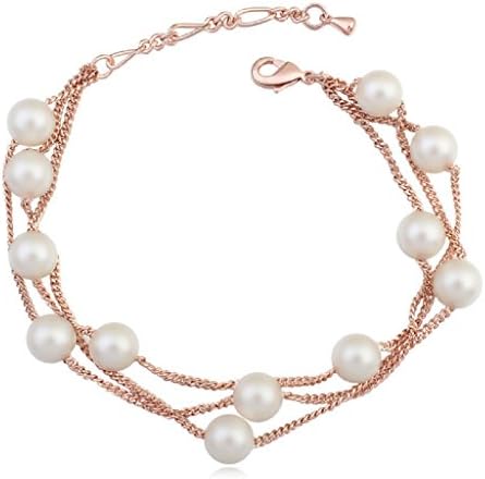 Crystalline Azuria Multi Strand Rose Gold Bracelet with Simulated White Pearls 18K Rose Gold Plated bracelet for Women