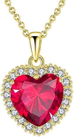 VONSSY Classic Heart Pendant Gemstone Necklace | Crystal Cubic Zirconia Birthstone Ruby Emerald Sapphire Necklace| 18K Platinum Gold Plated Chain | Vintage Meaningful Jewelry Gift for Mother Wife Girlfriend