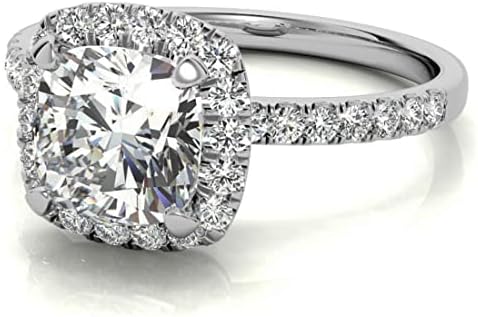 — 2 CT Cushion Cut Moissanite Engagement Rings for Women Wedding Bridal Ring Set 925 10K 14K 18K Solid White Yellow Rose Gold Solitaire Halo Eternity Vintage Anniversary Promise Purpose Gift for Her–