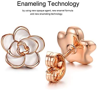 Rose Earrings/Necklace Set for Women, White/Rose Gold plated Sterling Silver Post Stud Earrings, White/Black Rose Earring